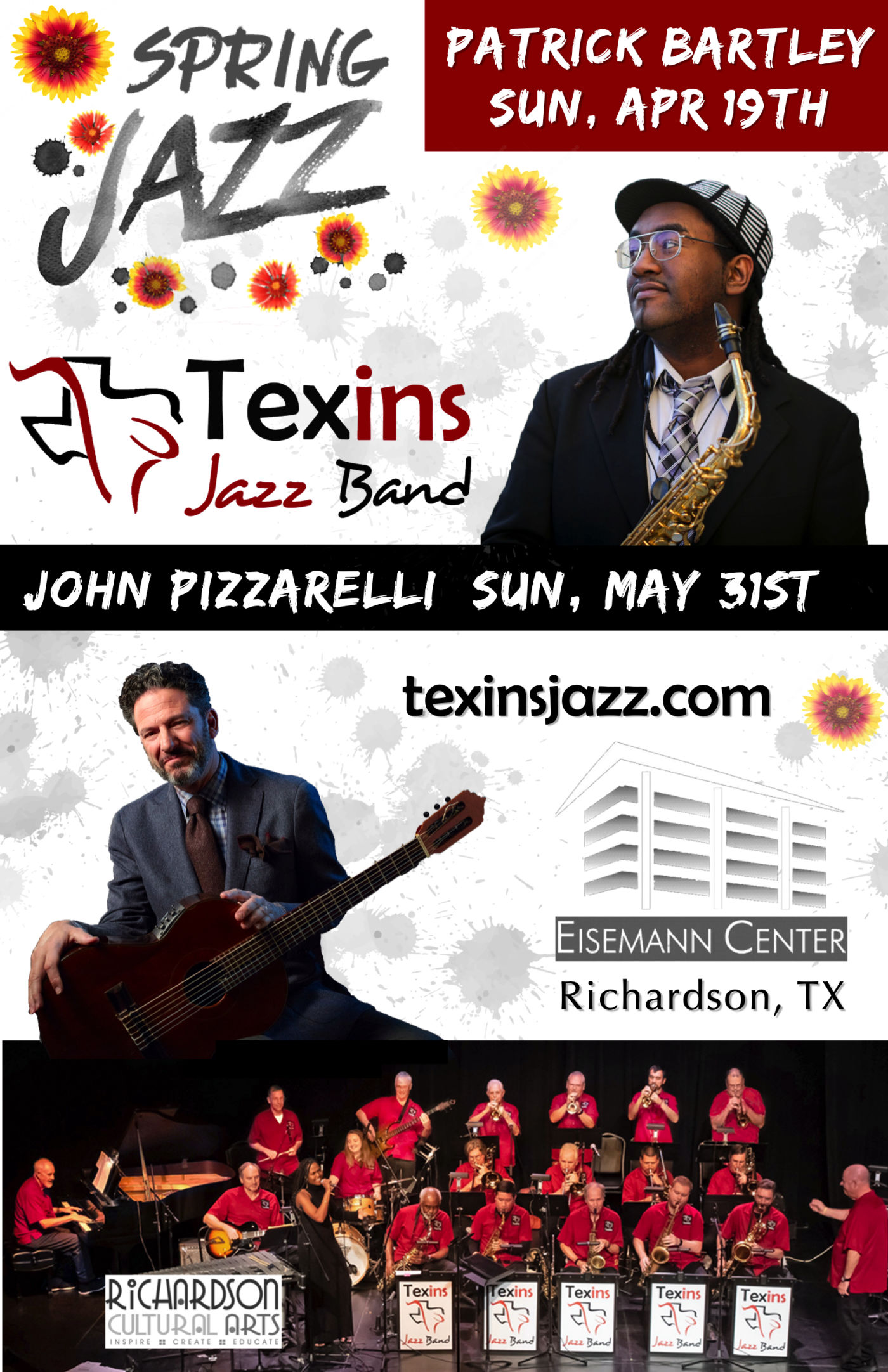 An 18-piece big band based in Dallas, TX. Founded in 1986 and operated as The Texas Instruments Jazz Band from 1986-2019. After 33.3 years and 326 concerts (including 51 guest artist concerts) we changed our name to Texins Jazz Band in 2020. Read more about the band and our history of great guest artists here.